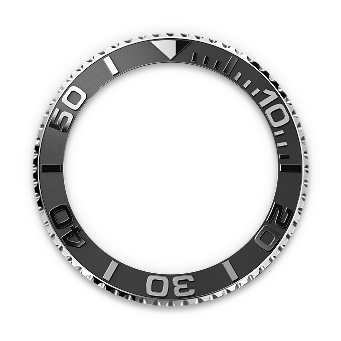 Bidirectional rotatable 60-minute graduated bezel with matt black Cerachrom insert in ceramic, polished raised numerals and graduations